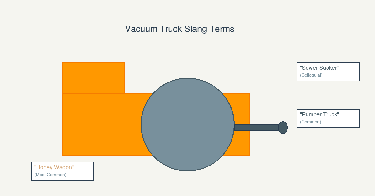 Regional variations: Different regions may use additional slang terms or variations. The EPA wastewater industry documentation notes that terminology can vary by region, though "honey wagon" is widely recognized across the United States.